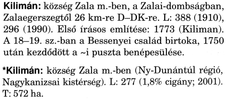 Kilimán kisk. Zala vármegye nagykanizsai járásában, (19 ...
