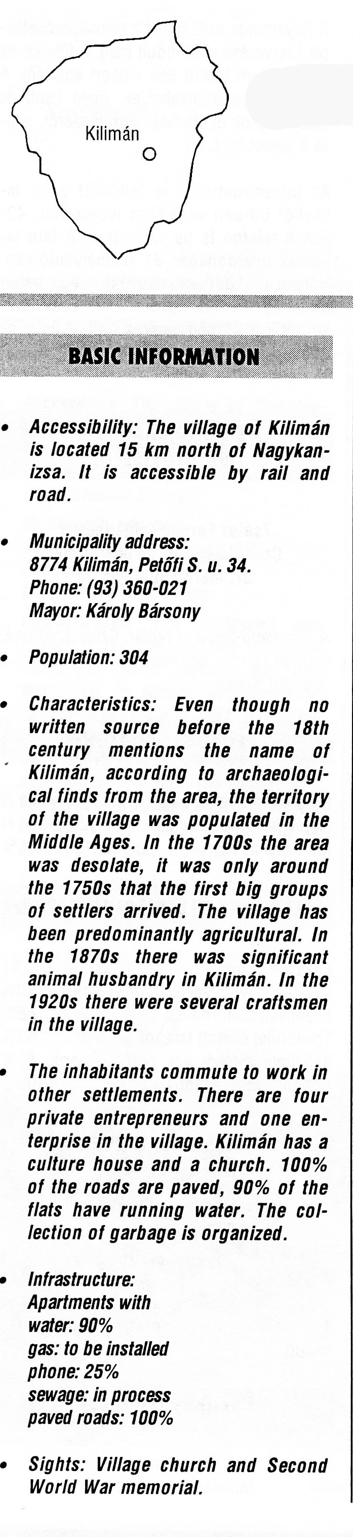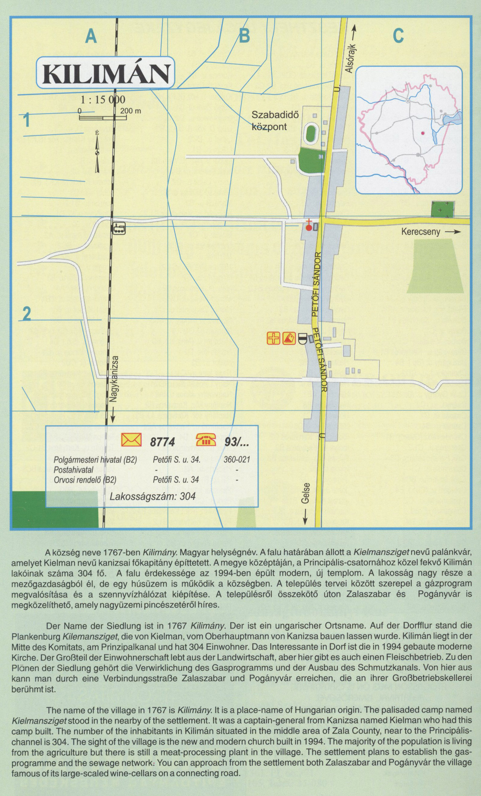 KILIMÁN A község neve 1767-ben Kilimány. Magyar helysé ...